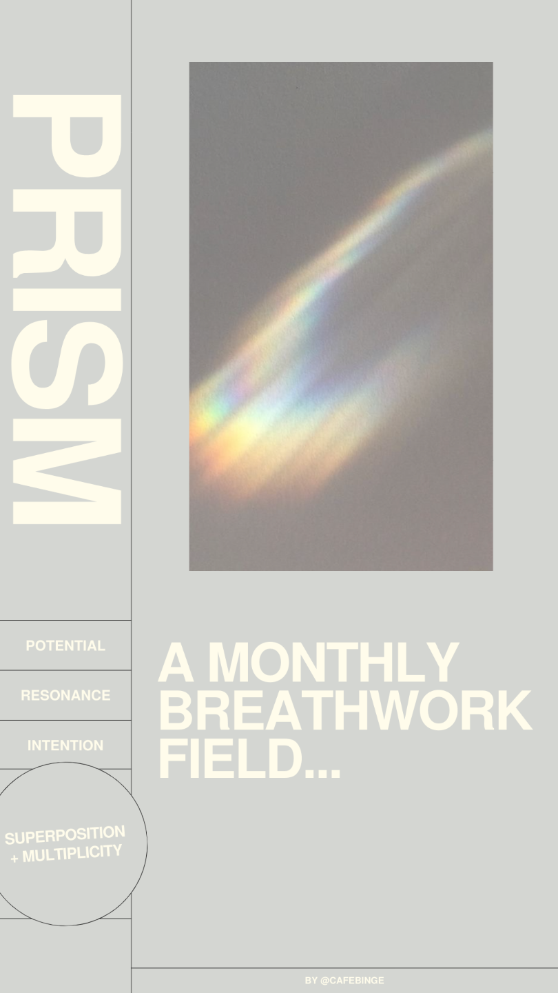The Sufi poet Rumi wrote, "Out beyond ideas of wrongdoing & rightdoing, there is a field. I'll meet you there." This is PRISM. & this where I will be, each month. This LIVE gathering (hosted by @cafebinge on Zoom) is an invitation into that field. Rumi’s poetic field, yes, but also the quantum field. Through the "Quantum Leap" breathwork, we’ll meet in a collaborative + feminine space, shaped by everyone who enters it. Each month will offer a different facet, a different edge of the prism, *& if my vision stands, there will be something specific here for anyone who feels called.